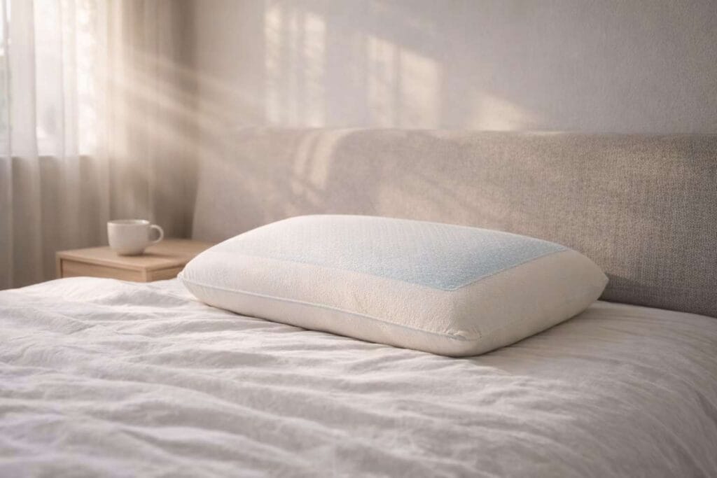 This pillow is designed for sleeping use and intended for hot sleepers who prefer a medium-firm feel. Constructed with a fixed, bonded structure combining an active gel cooling layer with a memory foam core. The design prioritizes consistent support and temperature regulation without adjustment mechanisms or removable fill.