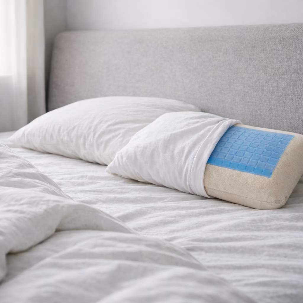 This pillow is designed for sleeping use and intended for hot sleepers who prefer a medium-firm feel. Constructed with a fixed, bonded structure combining an active gel cooling layer with a memory foam core. The design prioritizes consistent support and temperature regulation without adjustment mechanisms or removable fill.