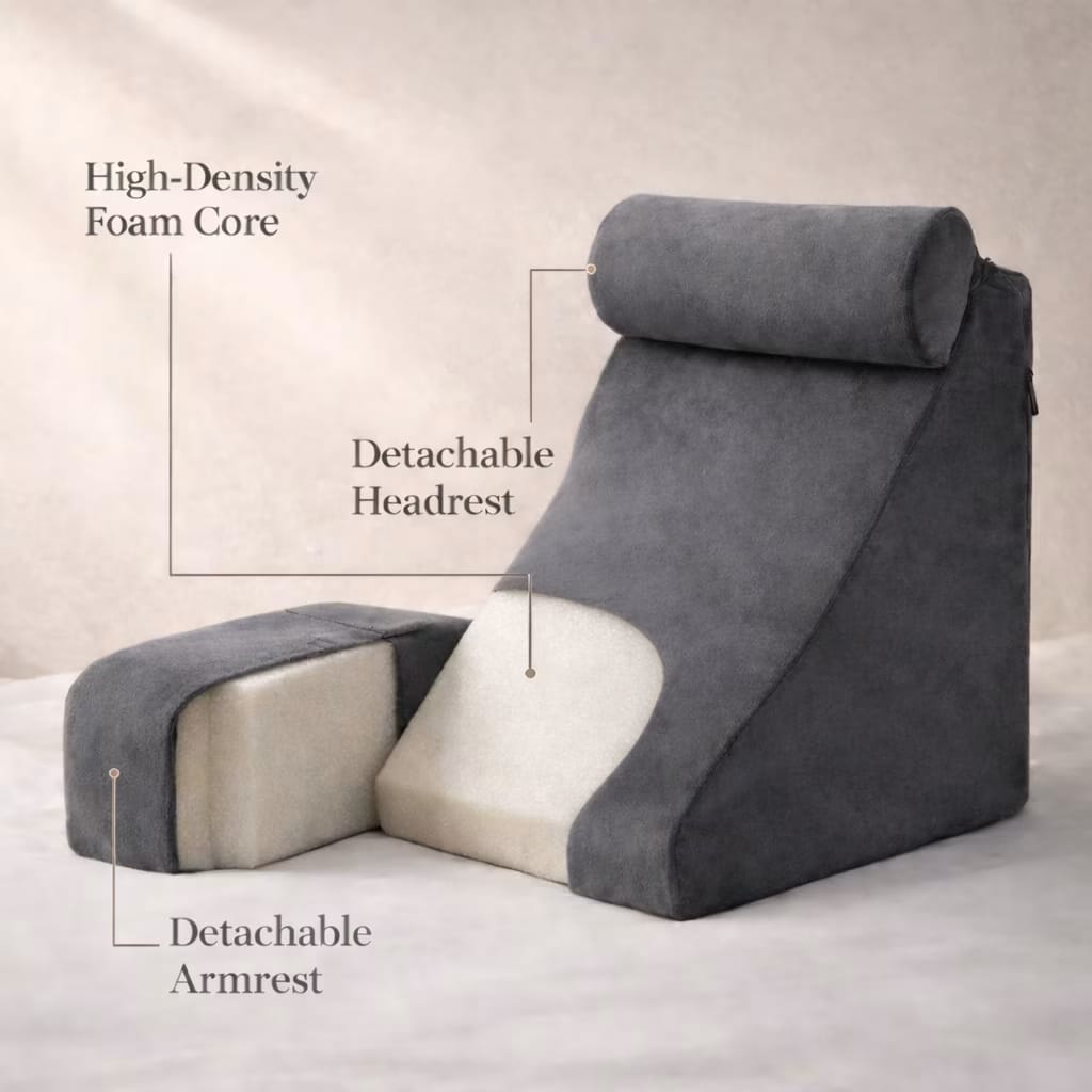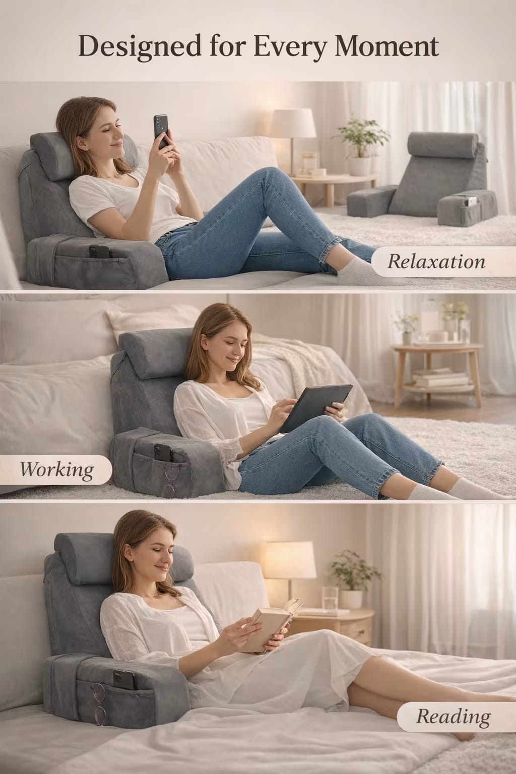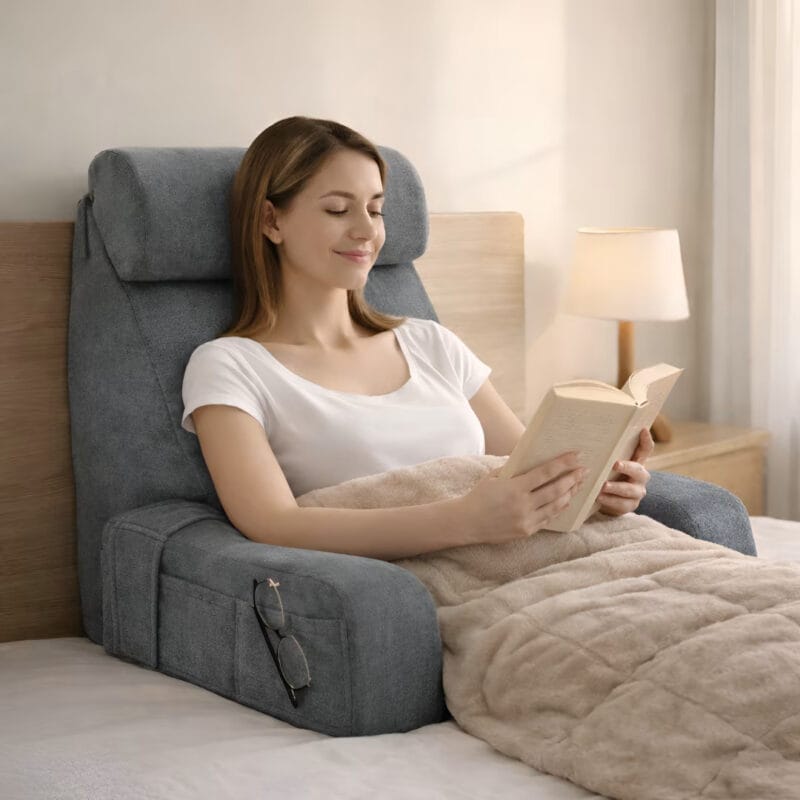 This reading backrest pillow supports your arms and upper back together — so your shoulders can finally relax instead of staying engaged.