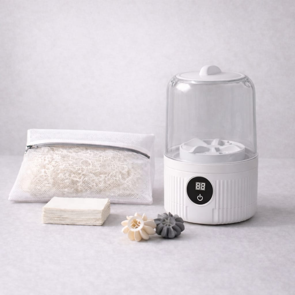 If you hand-wash delicates once a month, you probably don’t need this portable delicate washer. If you do it weekly — or daily — you know the friction: the time, the care required, the mental load of keeping certain items separate.